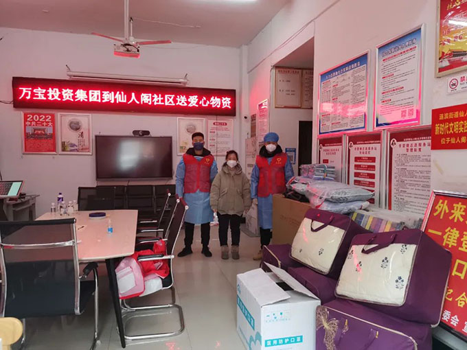12月1日,萬寶投資集團黨員志愿者到金色桃園小區(qū)助力疫情防控工作,與社區(qū)工作人員一同維護現(xiàn)場秩序,并向小區(qū)居民宣傳疫情防控知識。12月3日,萬寶投資集團開展“黨員進社區(qū)、服務在基層”活動,把N95口罩、被褥、枕頭和折疊床等一批愛心防疫物資送到仙人閣社區(qū),為社區(qū)疫情防控工作開展提供了有力的物資保障,也為在嚴寒中堅守的一線工作人員送去了關懷和溫暖。